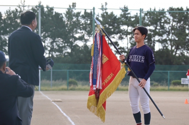 昨年の春季大会からあっという間に一年がたち、優勝旗を返還しました。